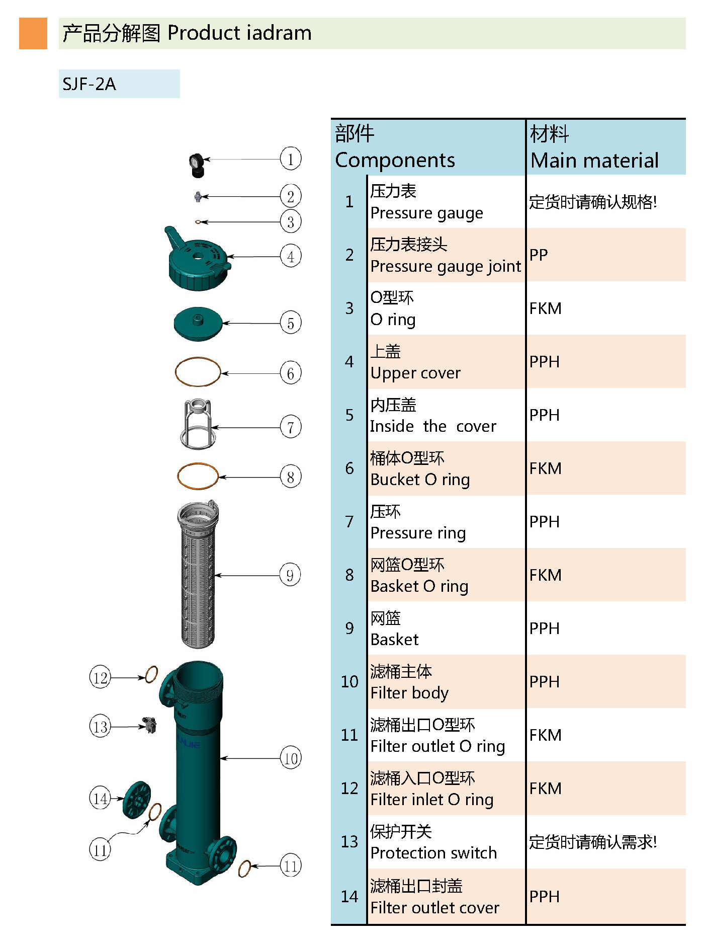 .过滤器滤袋式过滤器,配标准2#过滤袋(φ180*810MM)。