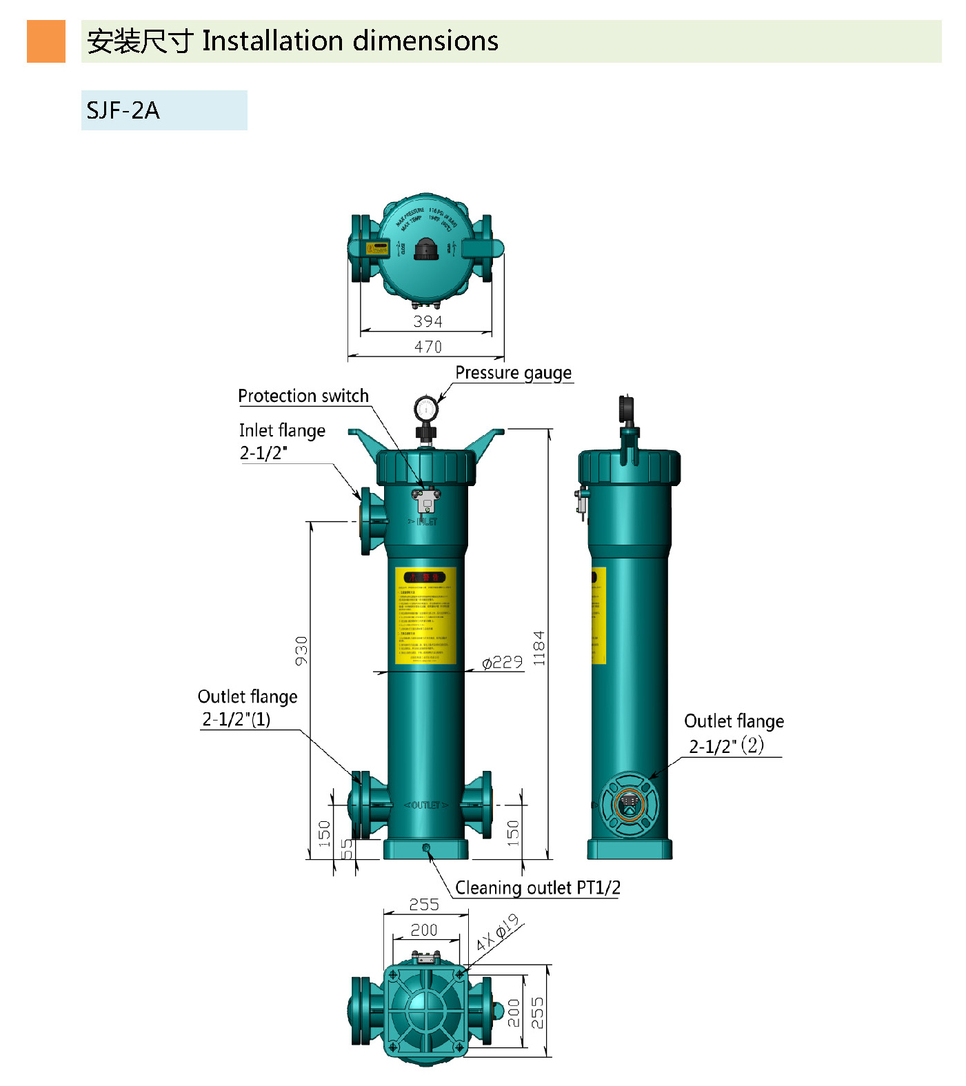 .进出水口采用法兰式连接,坚固耐用,可配各国标准管道法兰使用。