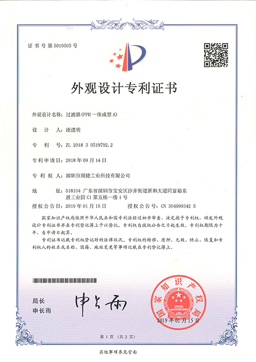 外观专利证书(过滤器PPH一体成型A)