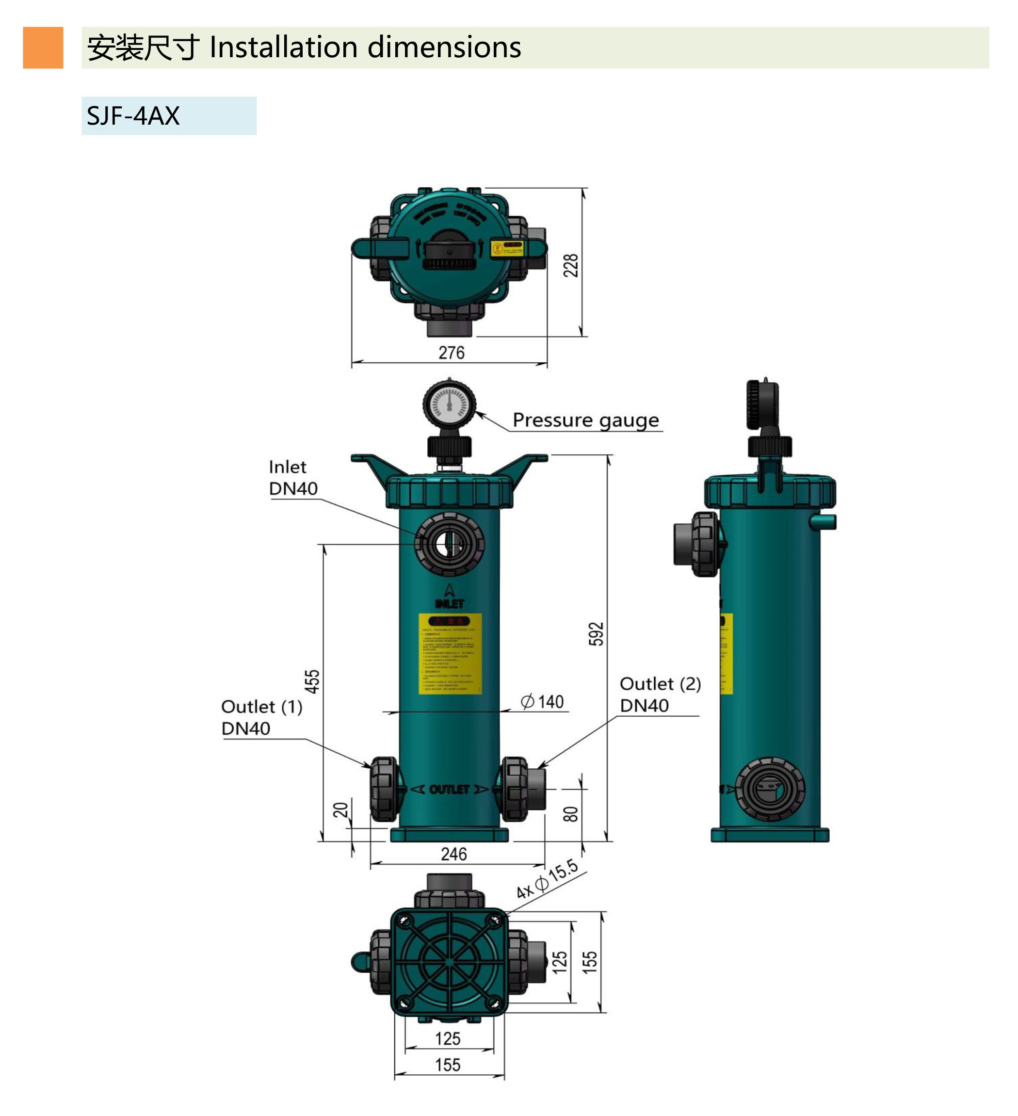 ●进出水口采用活接式连接,坚固耐用,可配接不同管径及管材使用。