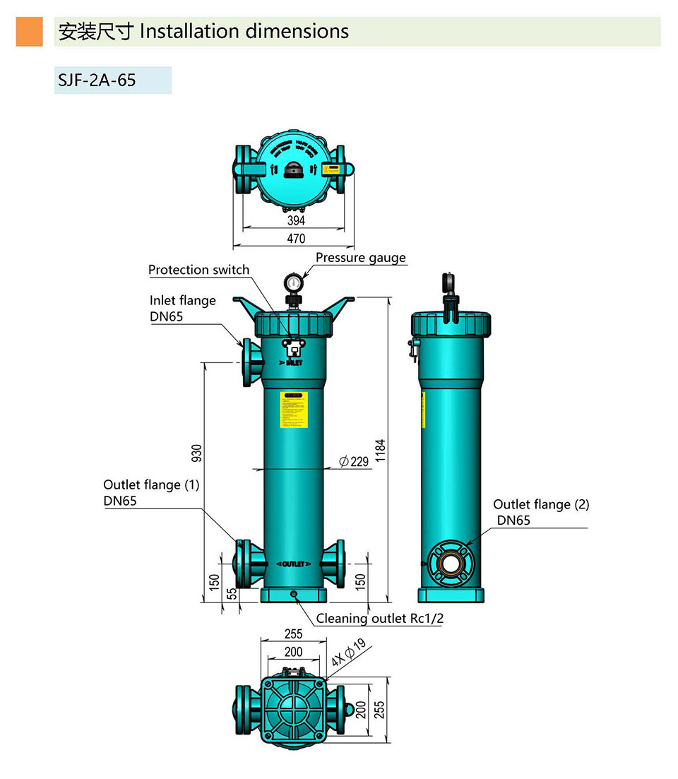 ●.进出水口采用法兰式连接,坚固耐用,可配各国标准管道法兰使用。