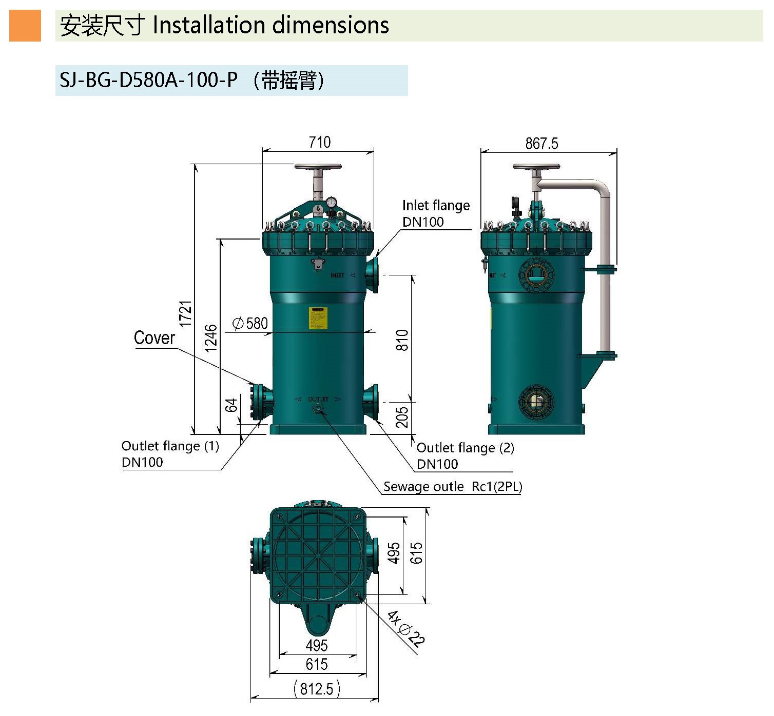 PPH多袋式过滤器SJ-BG-D580A-100-P(带摇臂)